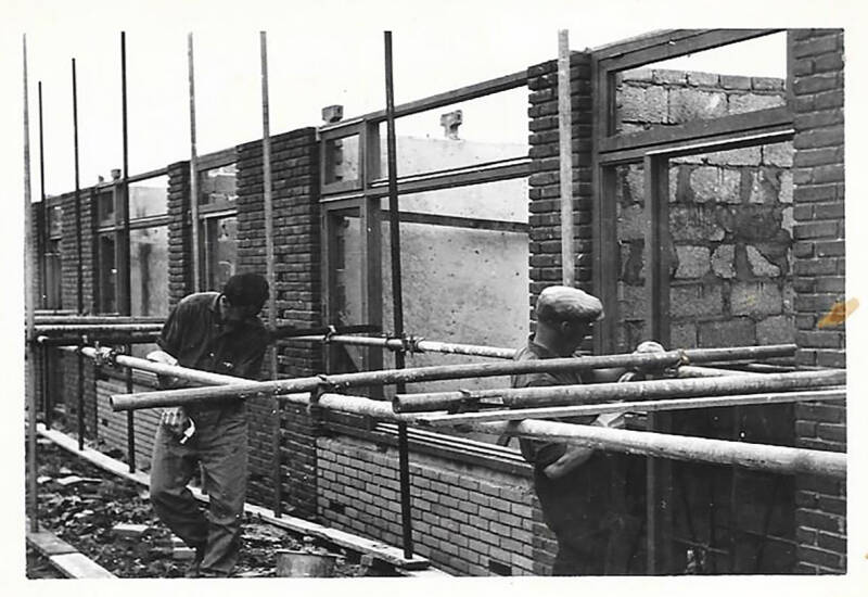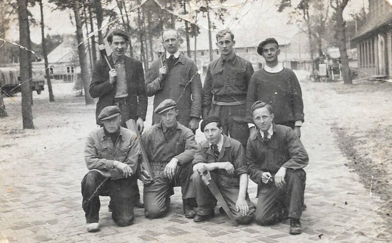 Herstel werkzaamheden na 2e wereldoorlog. Gijs van Krugten (1922-1982) links vooraan