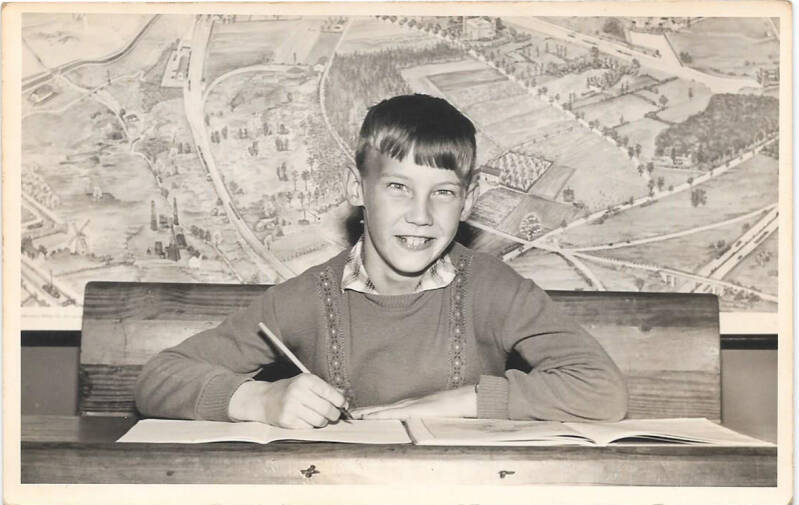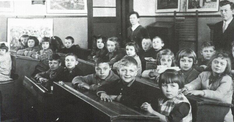 Gijs van Krugten (1922-1982) in de schoolbank, 6 of 7 jaar oud.