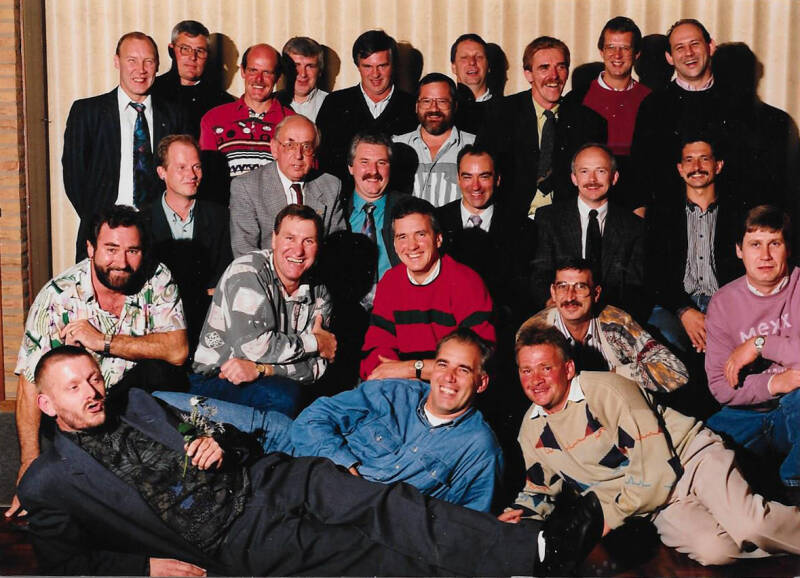 Sjaak van Krugten (1951) links achteraan. Reünie lagere school (1999)